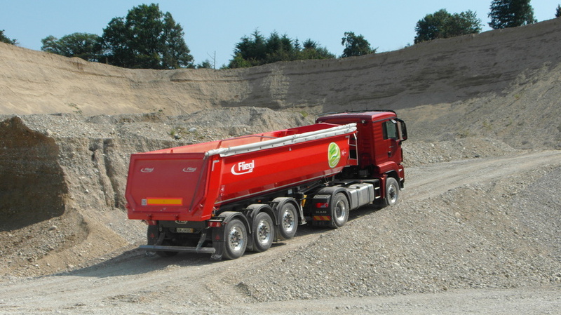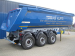 Kippsattelauflieger in Stahl von 22 cbm bis 50 cbm, mit Alu Aufbau von 24 cbm bis zu 60 cbm, Thermo Mulden mit Stahl light Aufbau und Isolierung mit Planen oder Aluminium Verkleidung.